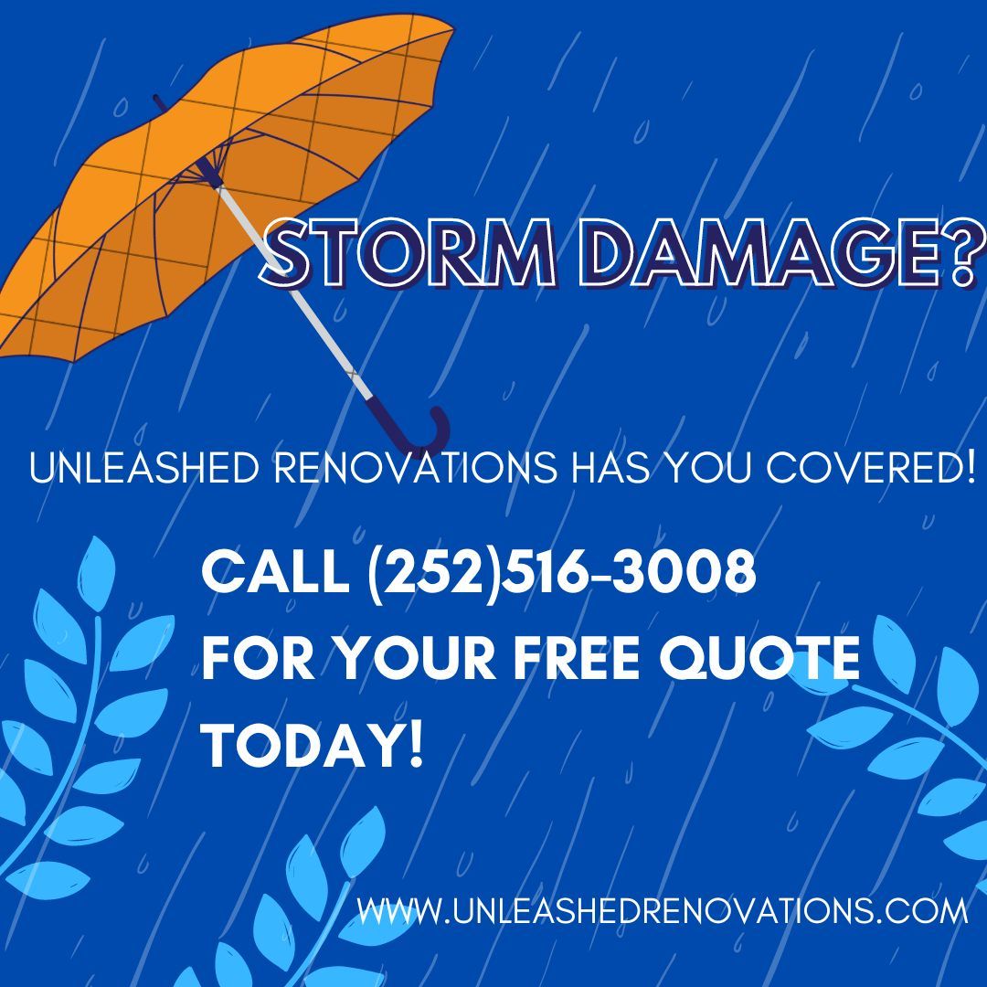 Unleashed Renovations is committed to restoring your home as quickly and safely as possible. Please feel free to give us a call at (252)516-3008 for a free quote and let us take care of everything!
